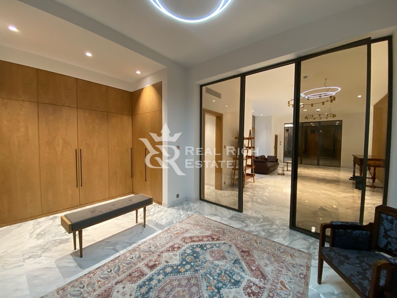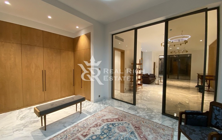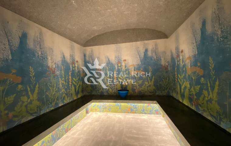 2 этаж: 2 блока по 2 спальни с гардеробными и санузлами, мастер-спальня с камином, большой гардеробной, санузлом и приватными террасами.