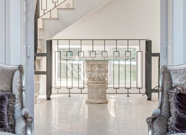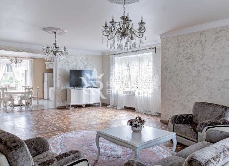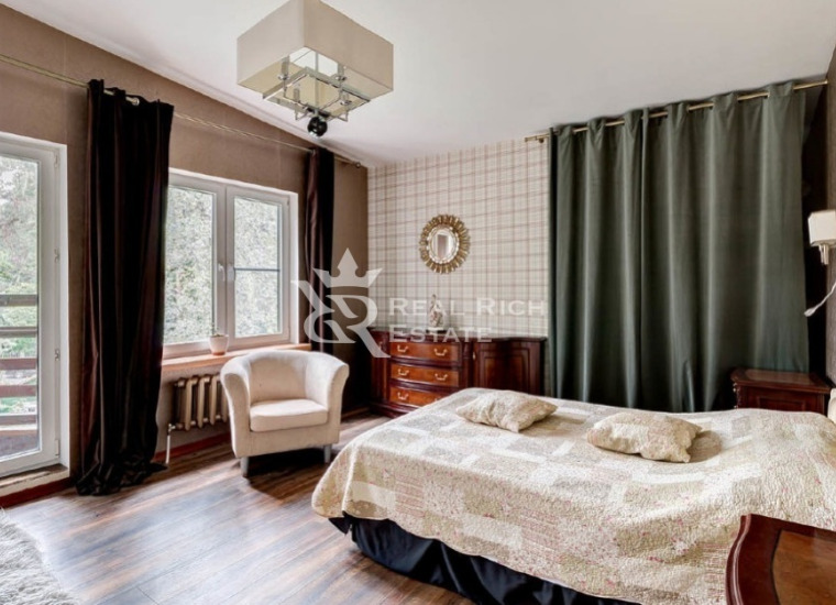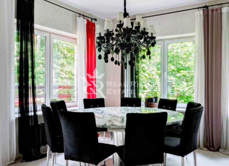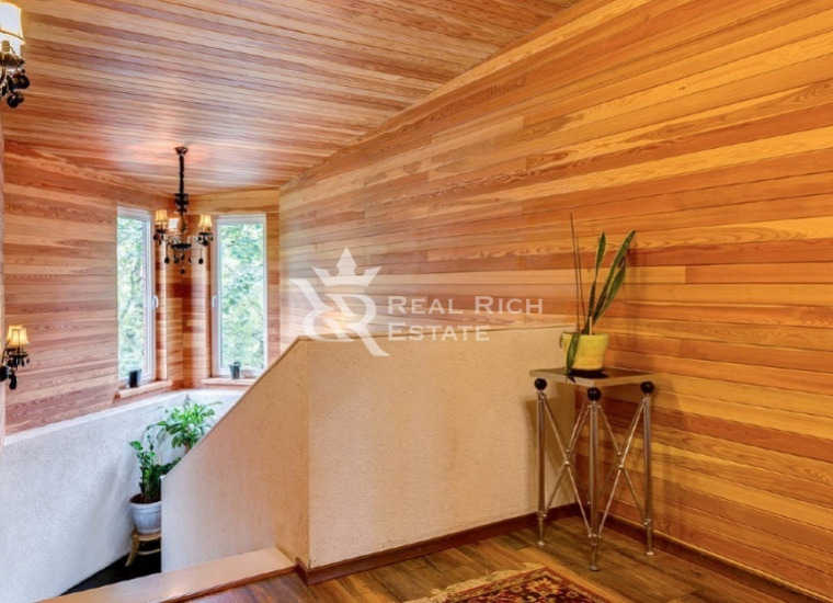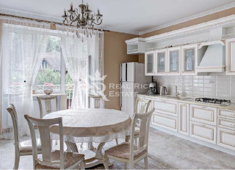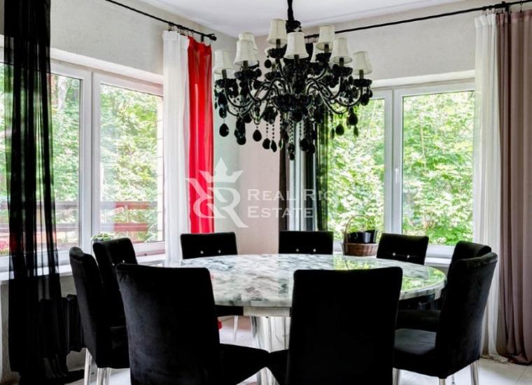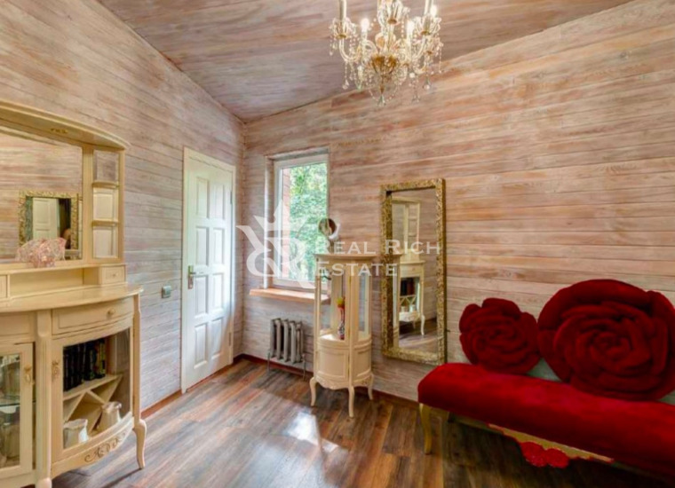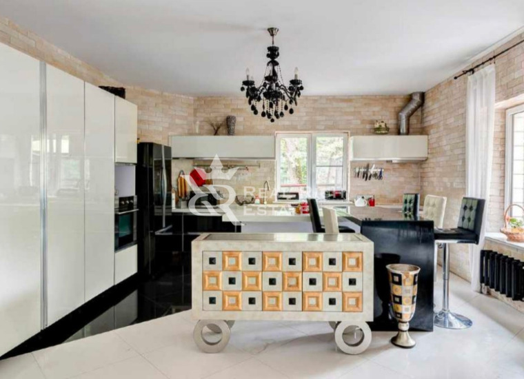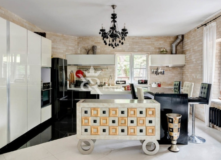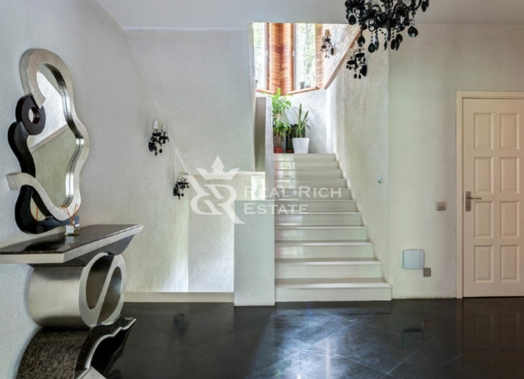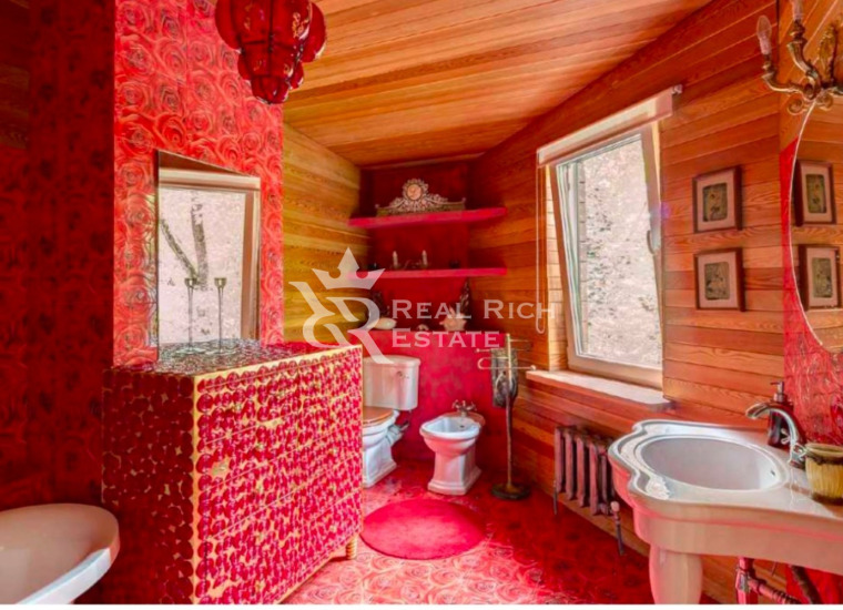 | Описание: | Белоснежный особняк, выполненный в европейском стиле с элементами замкового, построен на участке, где растут величественные голубые ели, горные сосны, большие белоствольные березы, высажены несколько каштанов, цветущие кустарники. На участке высажен газон, проложены извилистые мощеные дорожки, оригинальное уличное освещение, На участке есть отдельный каминный дом с отоплением, беседка, детская площадка, площадка для барбекю - все это очень гармонично вписывается в окружающий ландшафт. Во внутренней отделке дома, его интерьерах использована авторская работа. Дом представлялся в журналах по дизайну и архитектуре. Красивая мебель, картины, светильники и люстры говорят о безупречном вкусе владельца. |