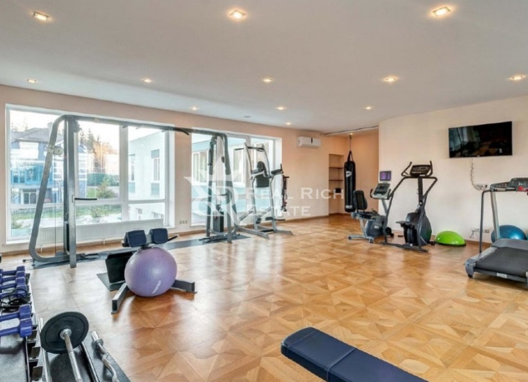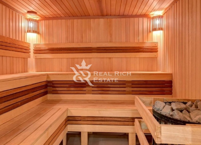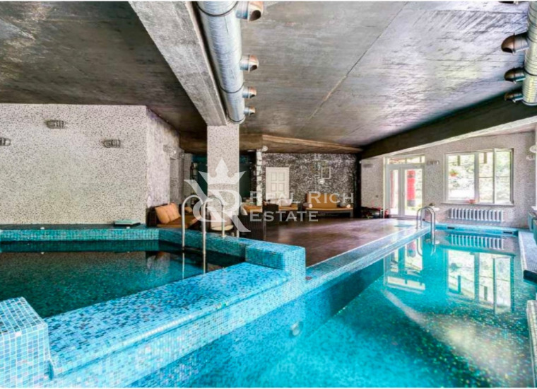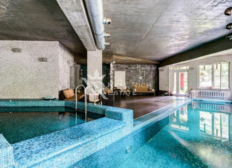 Цоколь: комната отдыха + домашний кинотеатр (HD проектор), бассейн, душевая, паровая и финская сауна, винный погреб, с/у, кладовая, котельная, система